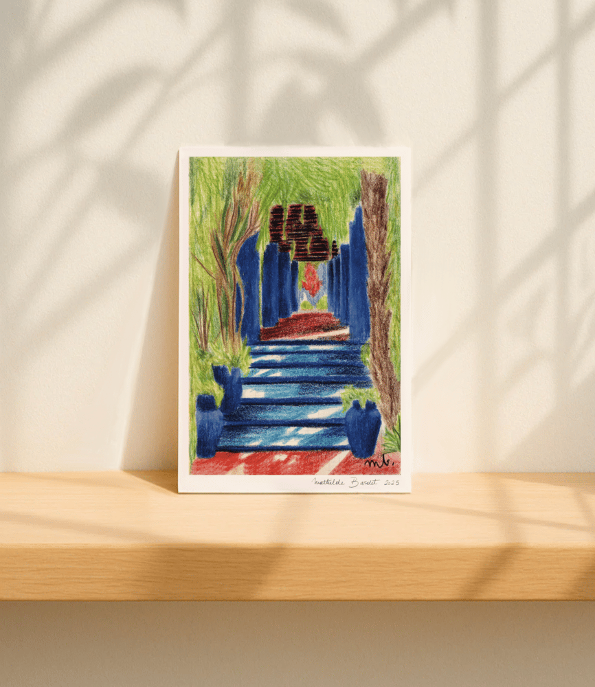 Edition limitée, signée à la main. Reproduction d’un dessin aux crayons de couleur.