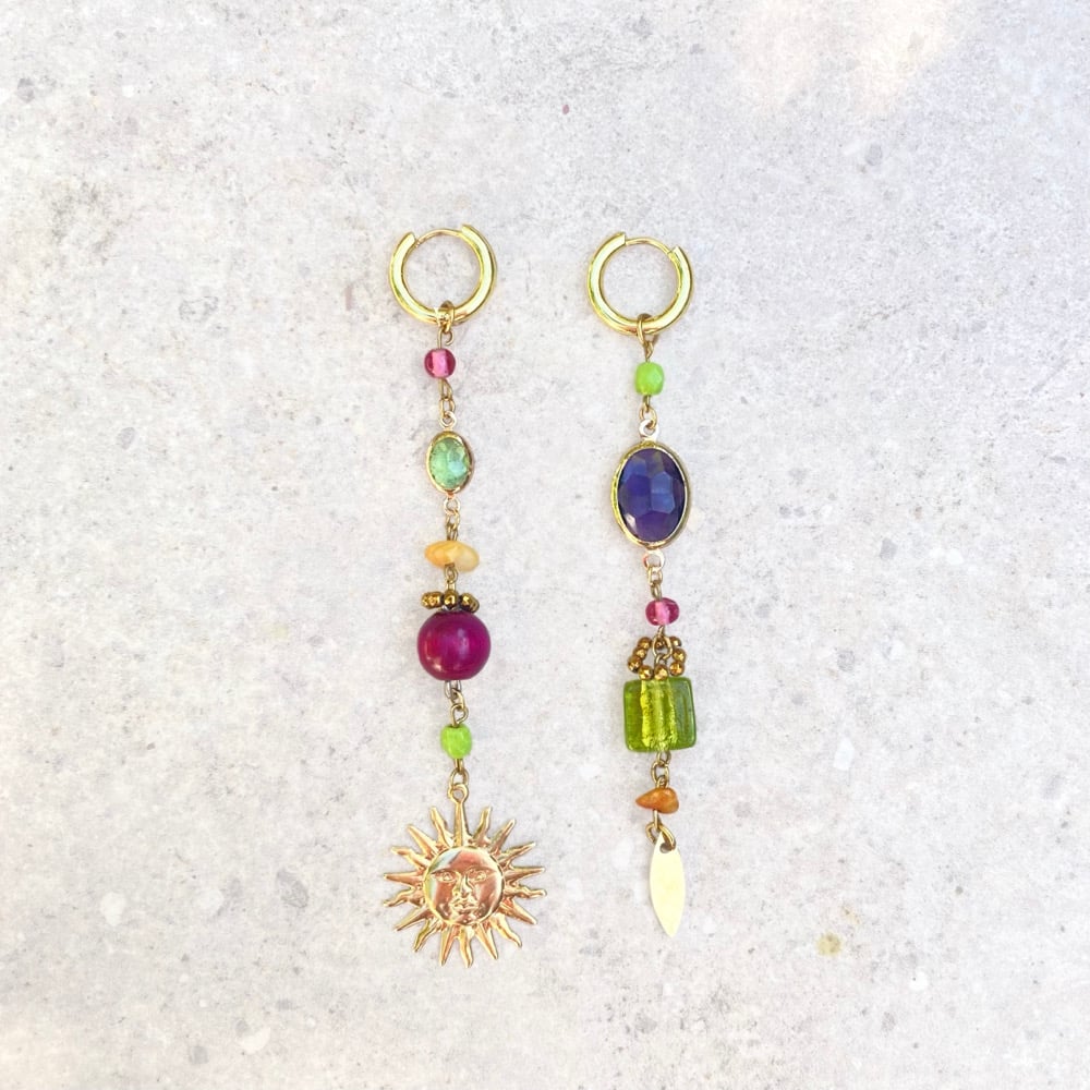 Cette paire est une pièce unique. La plupart des perles sont issues de l’upcycling d’anciens bijoux, de brocantes etc.