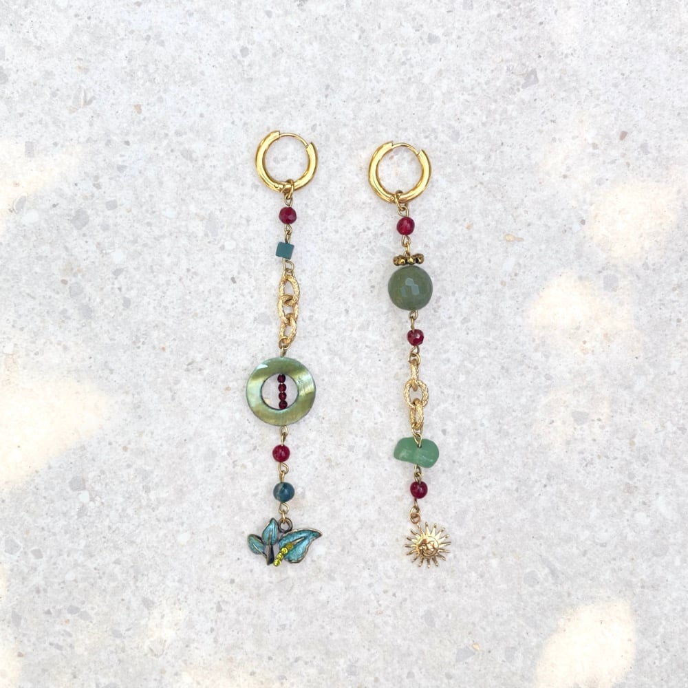 Cette paire est une pièce unique. La plupart des perles sont issues de l’upcycling d’anciens bijoux, de brocantes etc.