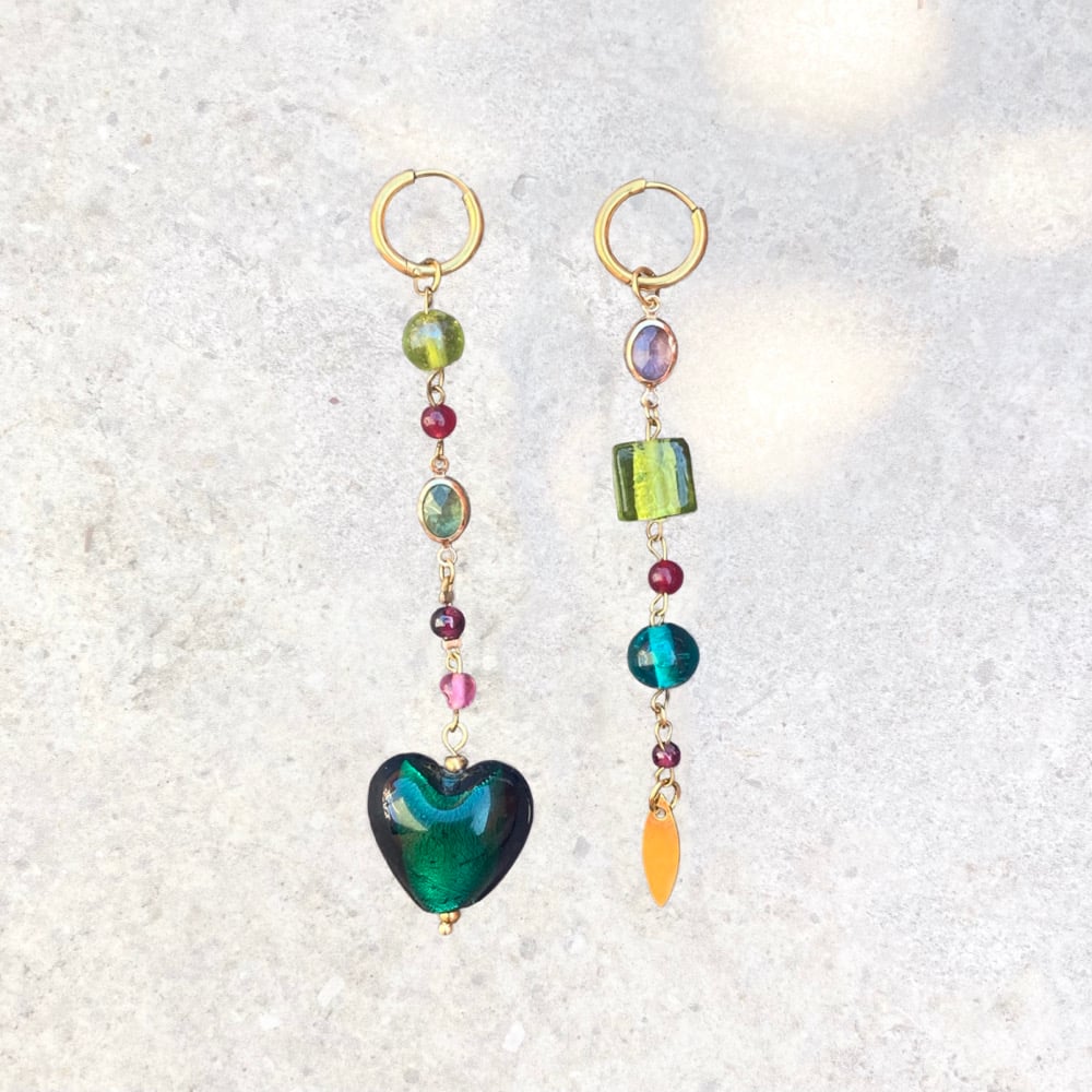 Cette paire est une pièce unique. La plupart des perles sont issues de l’upcycling d’anciens bijoux, de brocantes etc.