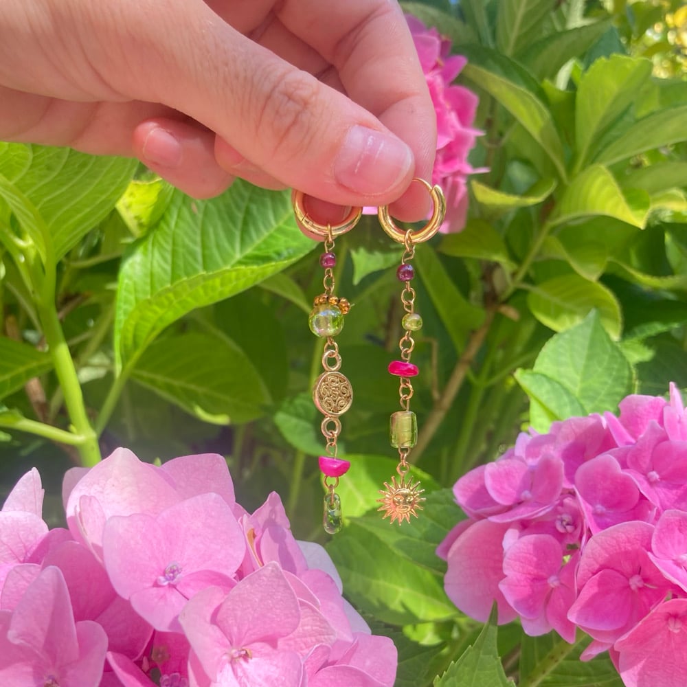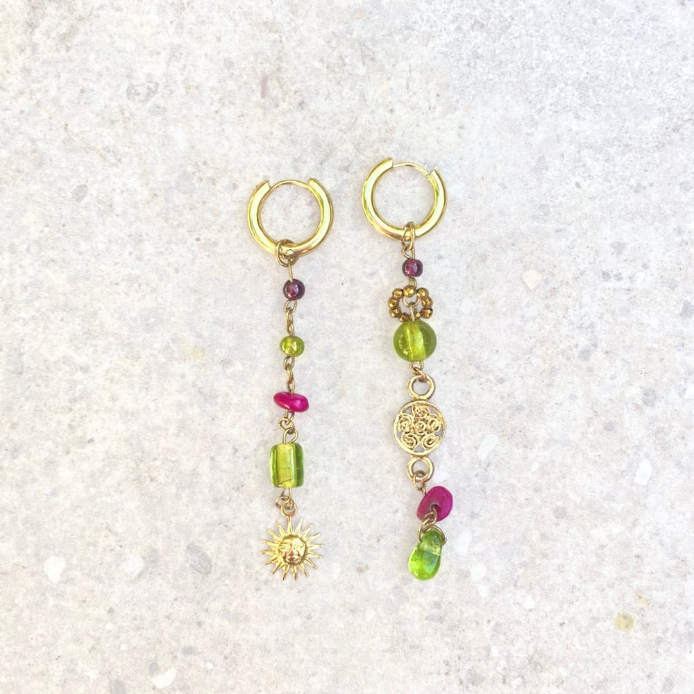 Cette paire est une pièce unique. La plupart des perles sont issues de l’upcycling d’anciens bijoux, de brocantes etc.