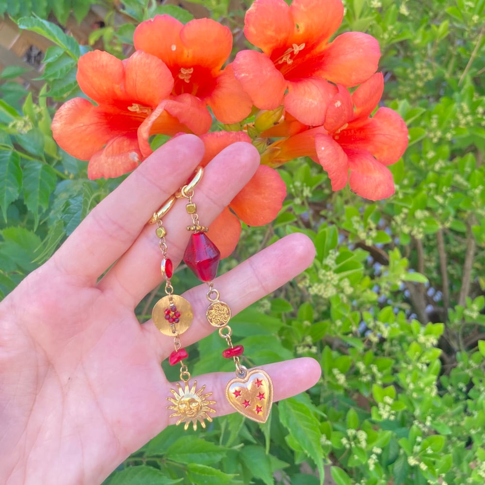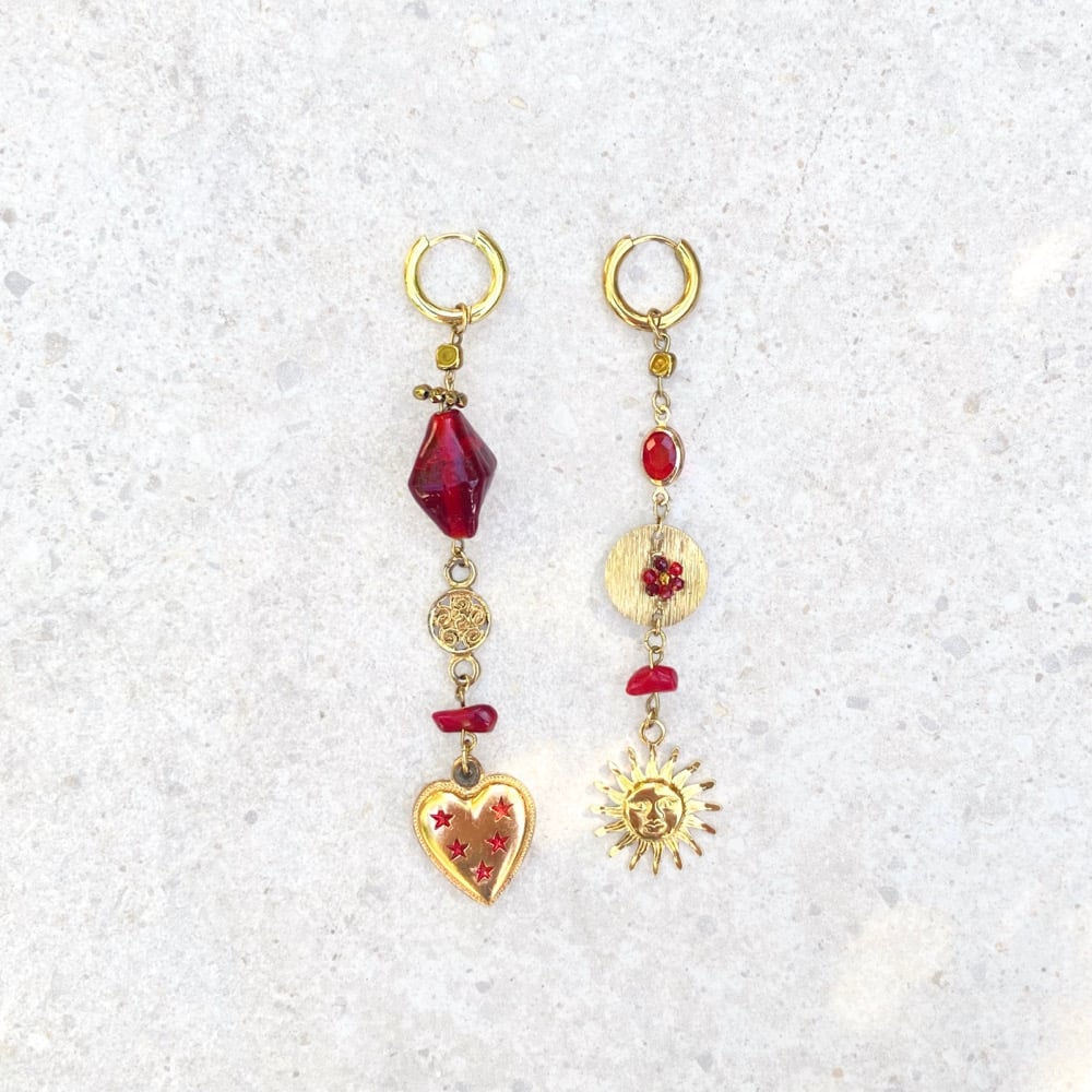 Cette paire est une pièce unique. La plupart des perles sont issues de l’upcycling d’anciens bijoux, de brocantes etc.