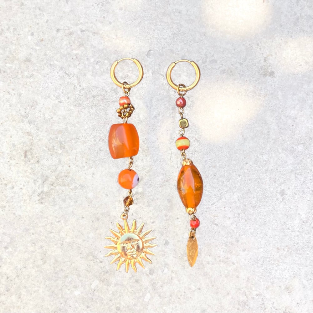 Cette paire est une pièce unique. La plupart des perles sont issues de l’upcycling d’anciens bijoux, de brocantes etc.