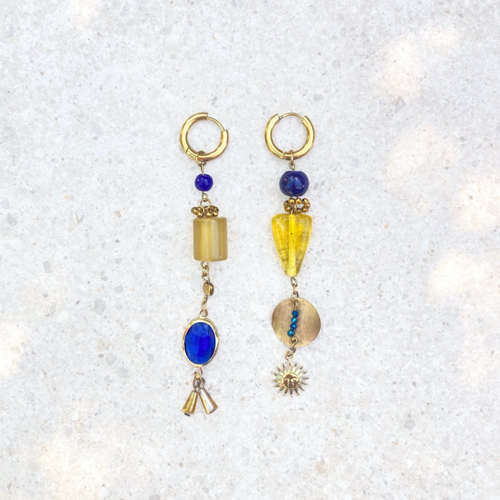 Cette paire est une pièce unique. La plupart des perles sont issues de l’upcycling d’anciens bijoux, de brocantes etc.